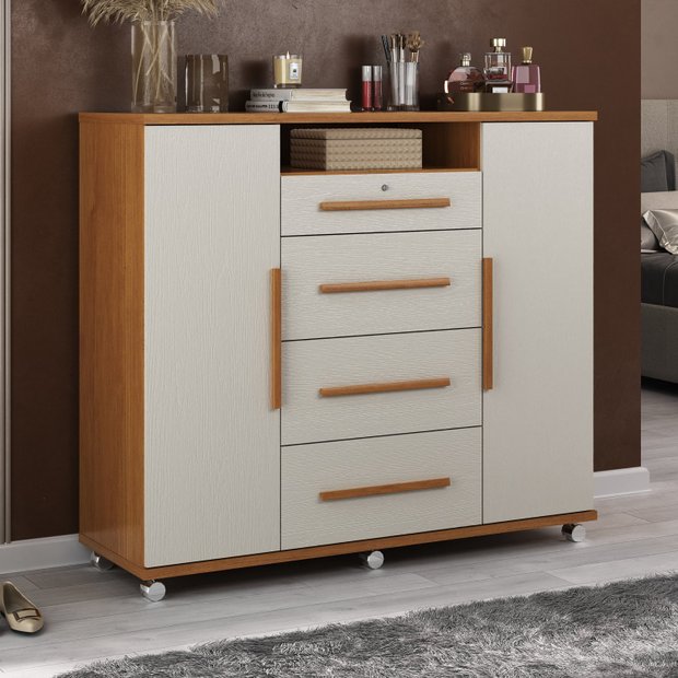 Cômoda Sapateira Versátil 2 Portas 4 Gavetas Cinamomo/Areia
