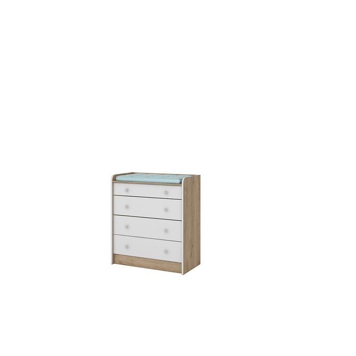 Cômoda Trocador Bebe 4 Gavetas Infantil Doce Sonho Branco/Carvalho