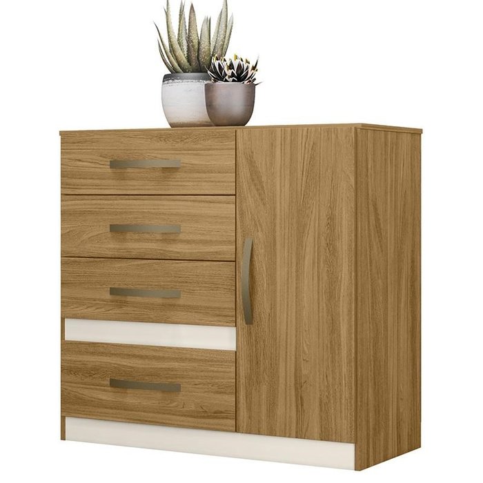 Cômoda Vênus com Porta e 4 Gavetas Color Flex Freijó/Off White - PR Móveis