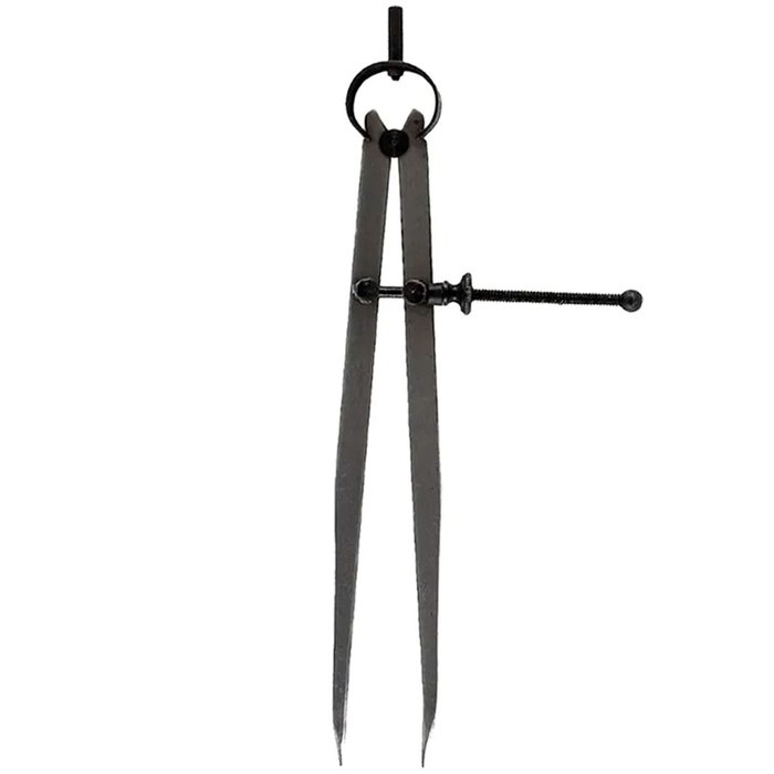 Para se utilizar o compasso industrial, basta deslizar uma ponta a 360º, enquanto a outra está fixada em alguma região da peça. Caso seja necessário, faça uma pequena abertura no material utilizando uma punção de centro, melhorando o deslizamento da ferramenta.