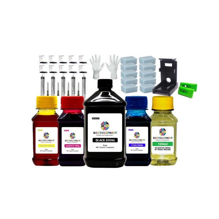 KIT PROFISSIONAL DE RECARGA COMPLETO PARA CARTUCHOS TINTA DE ALTA DEFINIÇÃO COM EXCELENTE QUALIDADE DE IMPRESSÃO FOTOGRÁFICA E RESISTÊNCIA U.V.