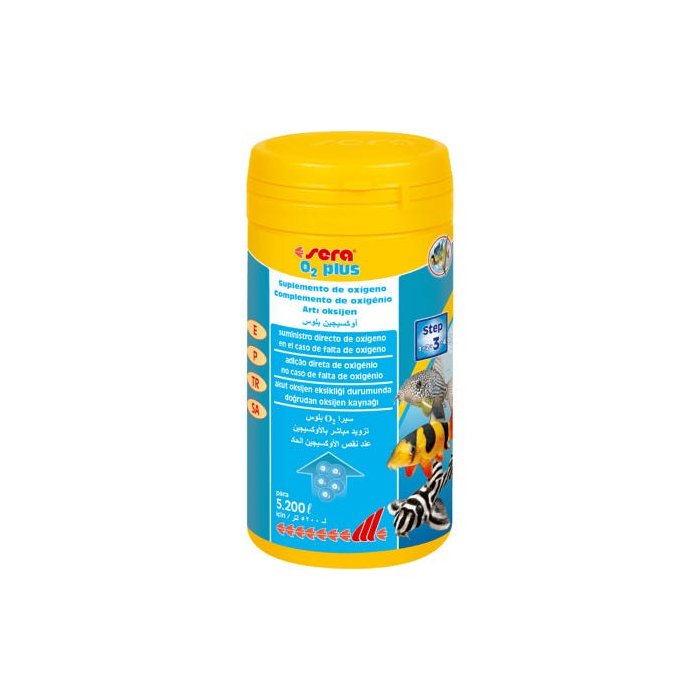 sera O2 plus, que se adiciona simplesmente à água, fornece imediatamente oxigênio, melhorando assim as condições de vida de todos os habitantes do aquário.