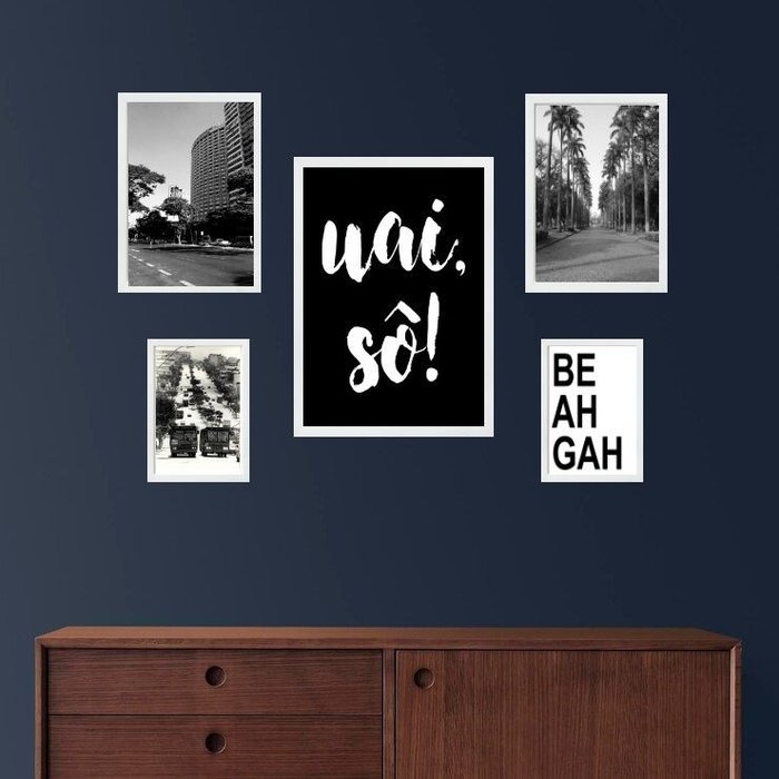 INFORMAÇÕES DO PRODUTO TIRE TODAS AS SUAS DÚVIDAS NO DESCRITIVO ABAIXO: Decoração para quarto, sala, cozinha, escritório, área gourmet e muito mais. Chega de paredes vazias! MEDIDAS - Kit composto por 5 quadros, sendo 2 quadros com medida 18x24cm, 2 quadros com 24x33cm e 1 quadro com medida 33x45cm. MATERIAL DO PAPEL - Papel fotográfico brilhante de altíssima resolução ACABAMENTO - Todos os quadros são acompanhados de vidro para proteção da imagem. - Moldura em madeira maciça na cor branca e pendurador . - Os quadros são embalados de forma segura com plástico bolha com camada dupla de acordo com o tamanho dos quadros. GARANTIA - Garantia de 3 meses. MEU QUADRO CHEGOU. COMO POSSO FIXÁ-LO? Você precisa apenas de um martelo e um prego, pois os quadros já vão acompanhados de penduradores. Esta é a forma mais indicada. COMO POSSO LIMPAR MEU QUADRO? A limpeza é feita como um móvel comum da sua casa. Apenas um pano seco ou espanador são suficientes para tal