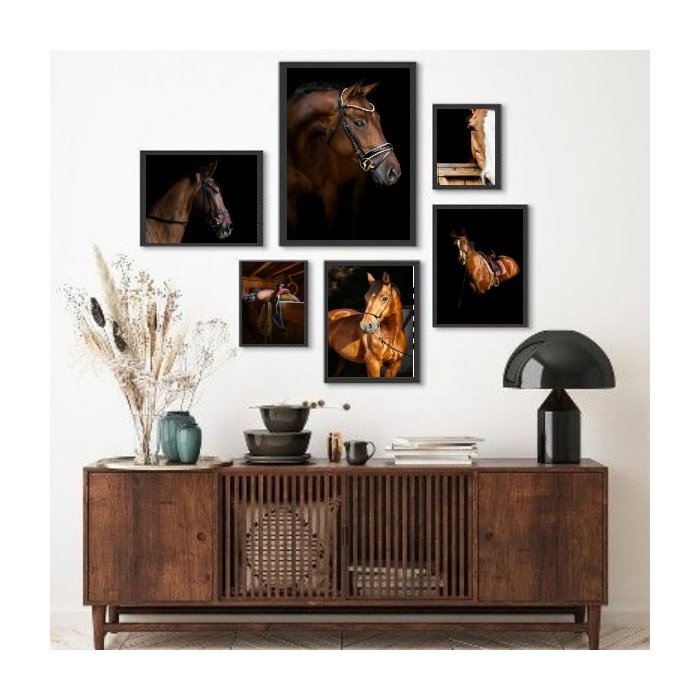 Composição 6 Quadros Fotografias Cavalos - com Vidro:madeira Branca