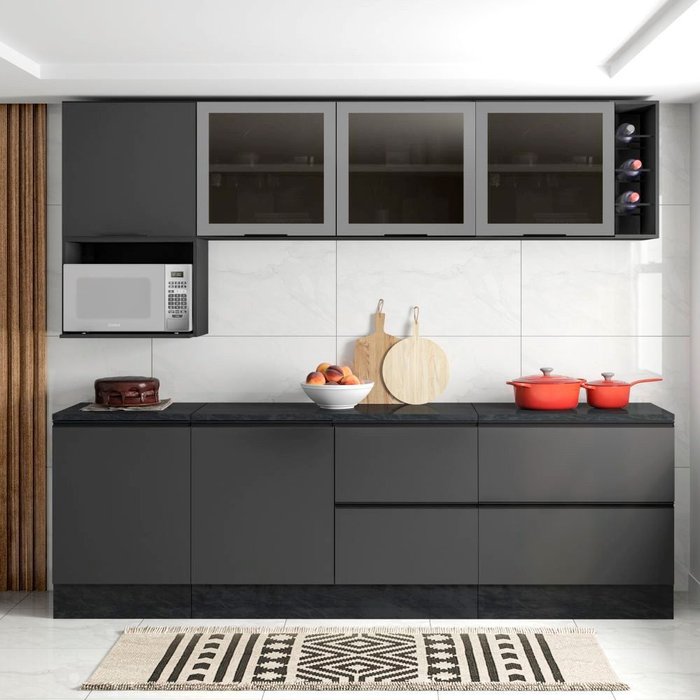 Composição Cozinha Modulada Etna 7 Peças Poliman Grafite