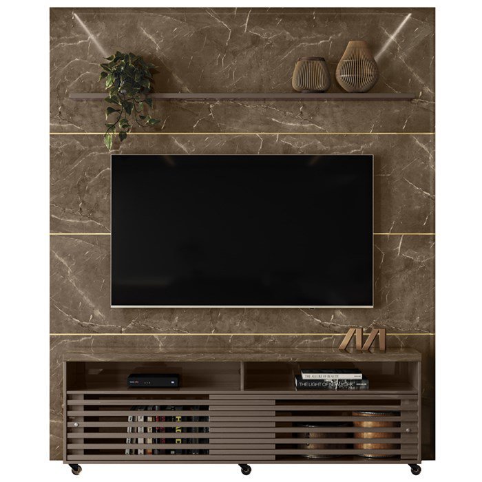 Composiçao Painel Rack Piso Teto TV 75 244x208cm 7171 Imperial Sepia MDT