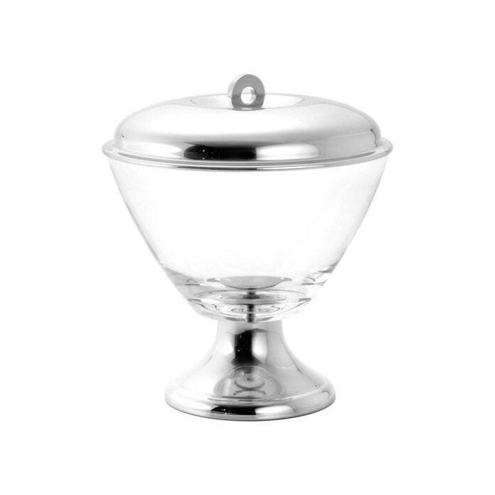 Compoteira de Vidro com Pé e Tampa de Prata Planet 21,5cmx20cm Rojemac