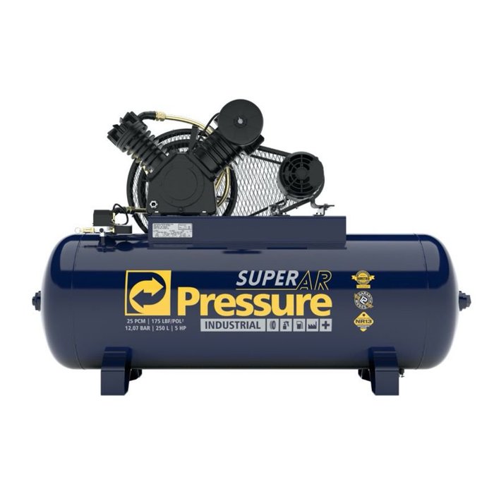 Compressor Ar PRESSURE Super AR 25/250V 175 PSI 250 Litros Motor 5HP Trifasico Super AR 25/250V 5HP