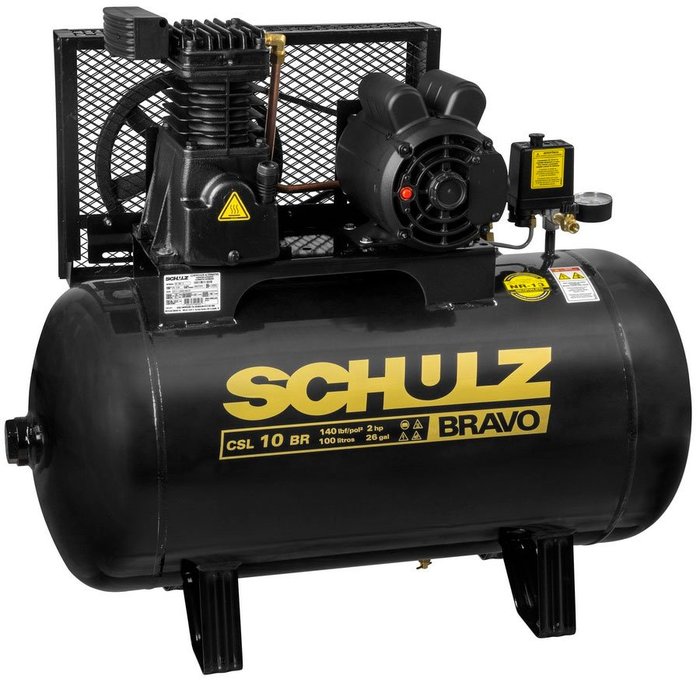 Compressor Ar SCHULZ BRAVO CSL10BR/100 2Hp Monofasico / Tanque 100 Litros Schulz Bravo CSL 10BR/100