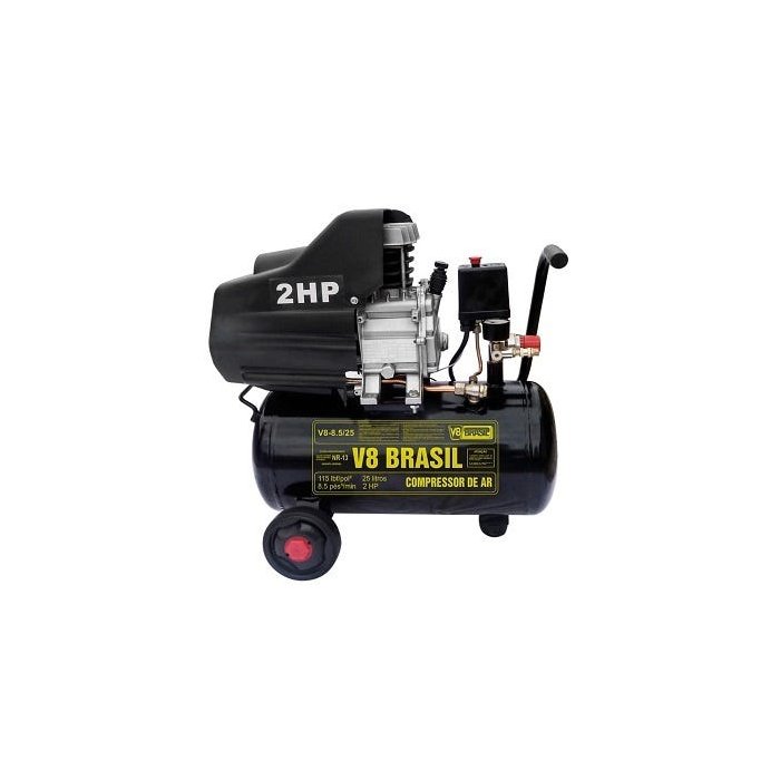 Compressor De Ar 25l 8,5 Pés 2hp Monofasico 127v V8 Brasil