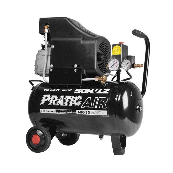 Compressor De Ar 8,2pés 2hp 25 Litros Pratic Air Schulz