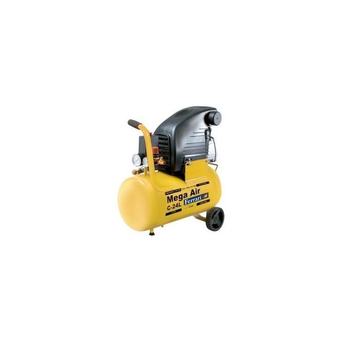 COMPRESSOR DE AR FERRARI C24L MEGA AIR Referência: AAC1010007 Modelo: C24L Marca: FERRARI País de origem: CHINA Potência: 2 hp 1.500W Voltagem: 110/220V Reservatório de Ar: 24 Litros Dimensões CxLxA: 61x58x27 cm Peso: 22 Kg Notas: Motor elétrico monofásico , 6,3 Pés Cubicos por Minuto , 115lbs de Pressão , pressão de saída Ajustável com Manômetro , tipo Intermitente , manômetro do reservatório Unidade Compressora: com reservatório de óleo , 21kg