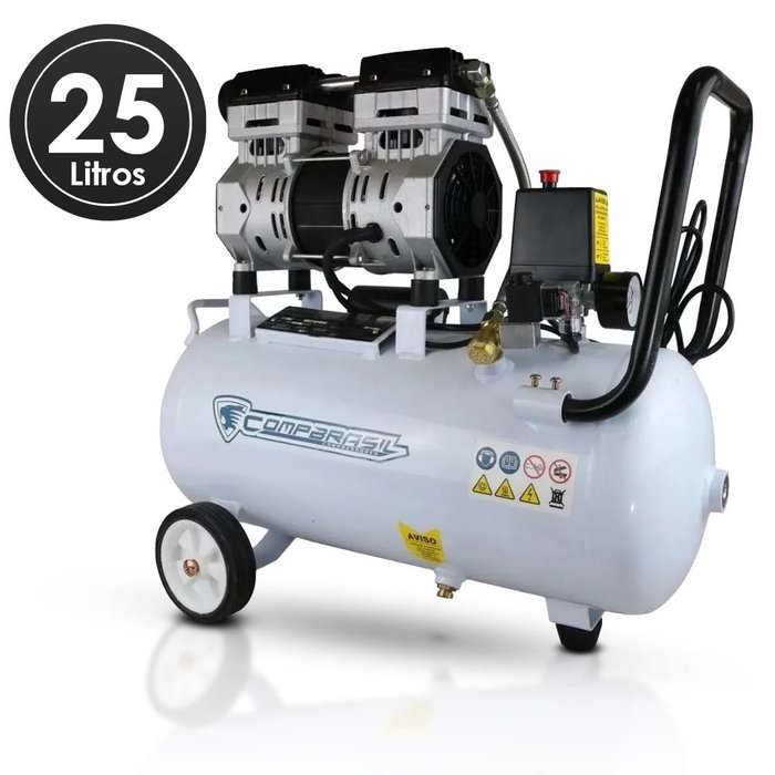Compressor de Ar Compbrasil 25L 6pcm 750w isento de óleo com certificação INMETRO.