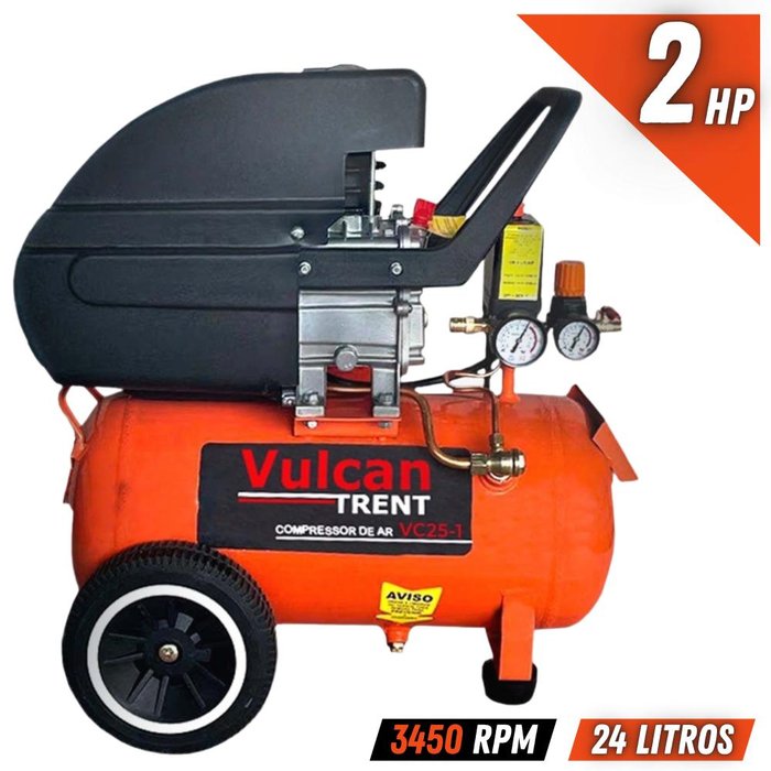 Compressor de Ar Vulcan Profissional VC25L 24 Litros Com Motor de Indução 127V ou 220V 2HP 8 Bar 3450rpm e Vazão de 160l/min