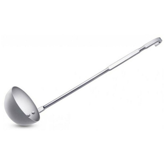 A concha de alumínio de 14 cm de diâmetro e cabo com 43 cm, tem capacidade para aproximadamente 500ml, é resistente, durável e perfeita para cozinhar e servir grandes porções de sopas, molhos, caldos e outros pratos.