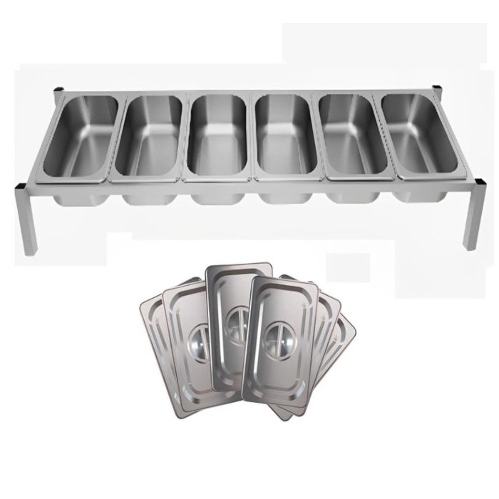 Condimentadora Inox de Bancada 6 Cubas com Tampa Restaurante