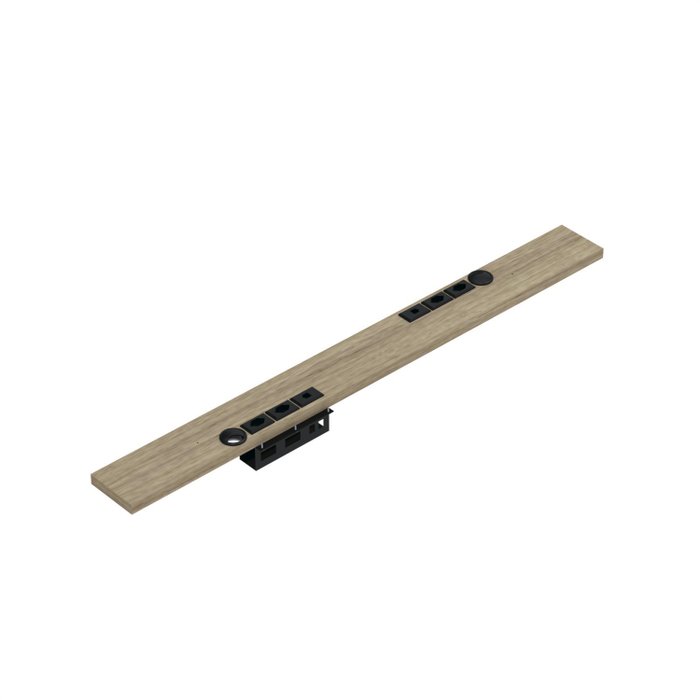 Conexão Passa Fio e Tomadas para Mesas Aretto em MDP Pandin, para organização dos fios e tomadas para não ficarem expostos no escritório, a conexão possibilita a união de outra mesa da mesma medida, possibilitando a transformação em uma plataforma