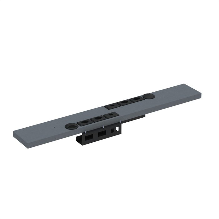 Conexão Passa Fio e Tomadas para Mesas PE25 em MDP Pandin, para organização dos fios e tomadas para não ficarem expostos no escritório, a conexão possibilita a união de outra mesa da mesma medida, possibilitando a transformação em uma plataforma