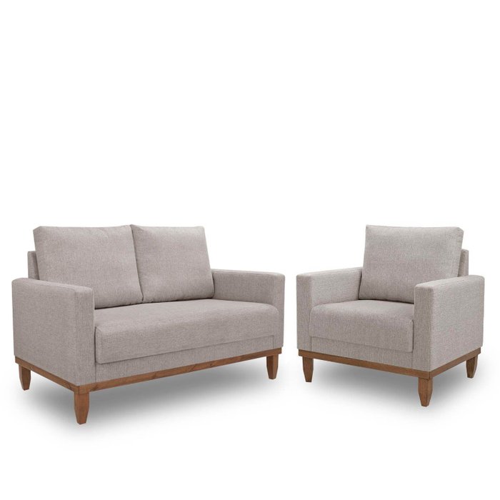 Conj. 01 Poltrona e 01 Living Namoradeira Sara - Linho Champanhe Linho Champanhe