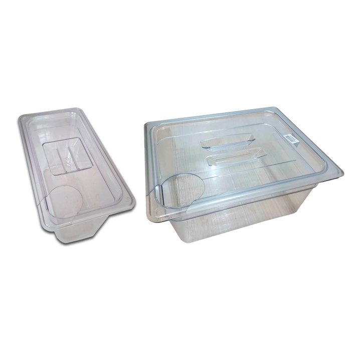 Cuba Gastronômica Policarbonato GN 1/2X200 mm 12 Litros + Cuba Gastronômica 1/3x200 mm 7 Litros e Com TAMPA e Com Abertura Para Sous Vide "SB"