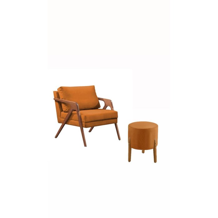 Conj. 1 Mona com 1 Puff Pés de Madeira Maciça Veludo:terracota Terracota