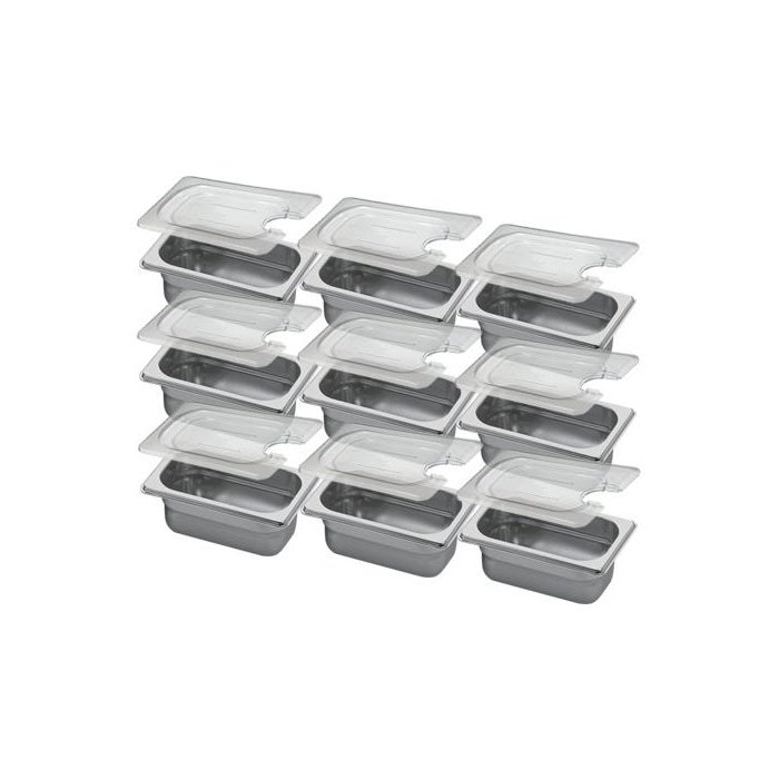 Conj 10 Cuba Gastronômica Inox GN 1/9x65 mm 0,67 L sem alça COM TAMPA COM ABERTURA