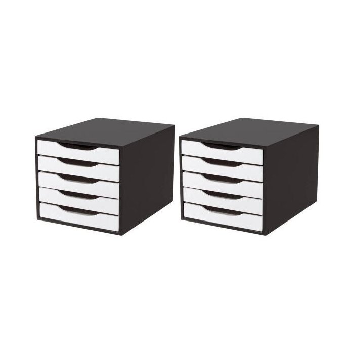CONJ 2 Caixa Arquivo em MDF Black Piano com 5 Gavetas BRANCAS