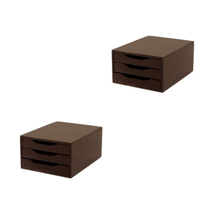Conj. 2 Caixa Arquivo Gaveteiro em MDF Tabaco com 3 Gavetas Tabaco