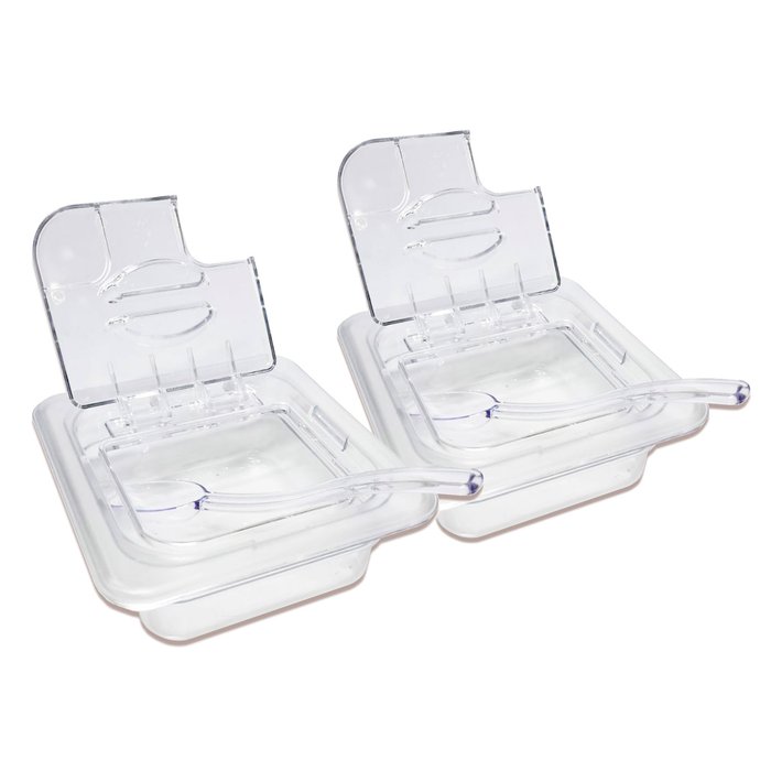 Conj 2 Cuba Gastronômica Policarbonato 1/6x65 900ml + Tampa Poli Flip Dobradiça e Abertura Sb + Colh