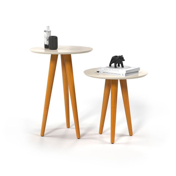 Conj 2 Mesas 4202 Pés Palito Ofertamo Sala Off White Off White