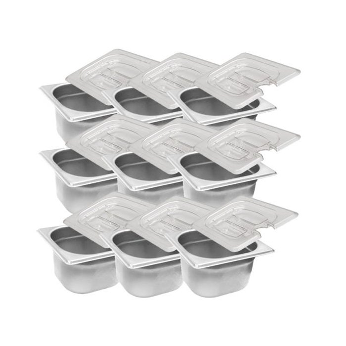 Conj 20 Cuba Gastronômica Inox GN 1/6x100 mm 1,52 L sem alça com Tampa POLI com Abertura
