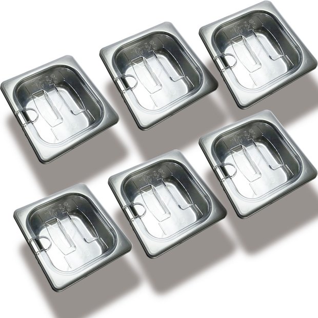 CUBA Gastronômica Em INOX GN 1/6x65 mm 900 ml + TAMPA 1/6 EM POLICARBONATO Com ABERTURA Para Colher SB