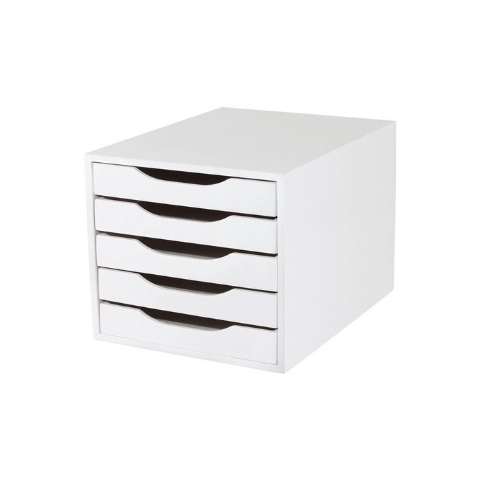 CONJ 3 Caixa Arquivo Em MDF Branco Com 5 Gavetas Brancas Referência 3306 - Souza