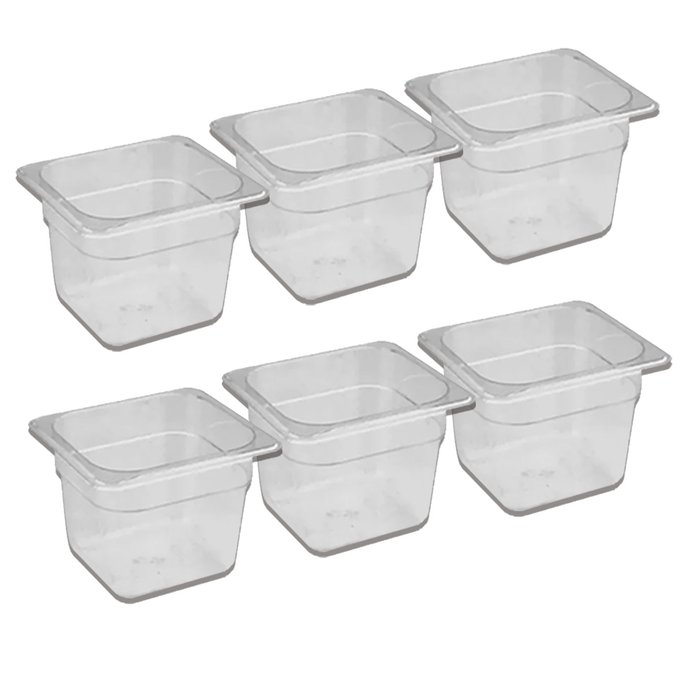 Conj 6 Cuba Gastronômica Policarbonato Gn 1/6 X 100 Mm 1,5l sem Tampa
