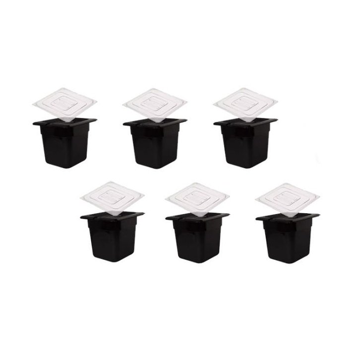 CONJ 6 Cuba Gastronômica Policarbonato GN 1/6X150 mm 2,2L PRETA + tampa transparente