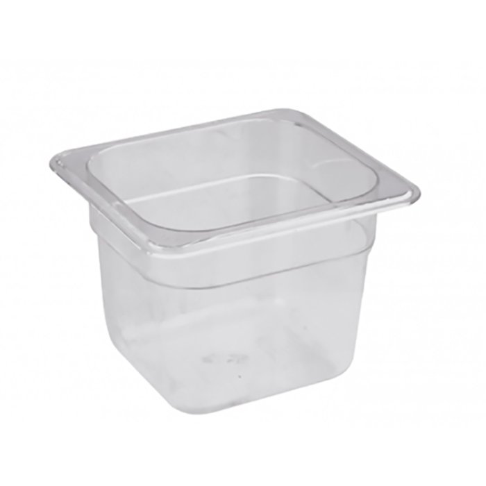 Cuba gastronômica, GN 1/6 x 100 mm, produzida totalmente em Policarbonato. Material de alta qualidade. Compatível com Rechauds e especialmente desenvolvida para a utilização em Buffets Self Service, Carrinhos Térmicos, Restaurantes e Refeitórios em geral.