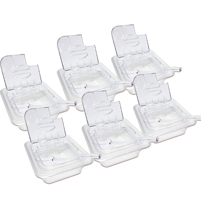 Conj 8 Cubas Gastronômicas em Policarbonato Gn 1/6x65 Mm 900 Ml + Tampa Flip Dobradiça e Abertura Sb