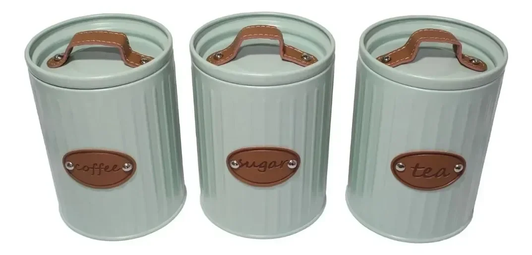 Conj de Potes Porta Condimentos de Ferro Azul com Detalhes em Couro Azul