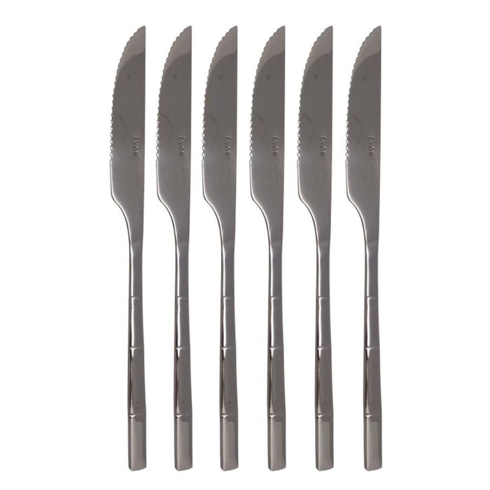 Conj Facas p/Churrasco Aco Inox Bambu Elegant 22.3cm 6pcs