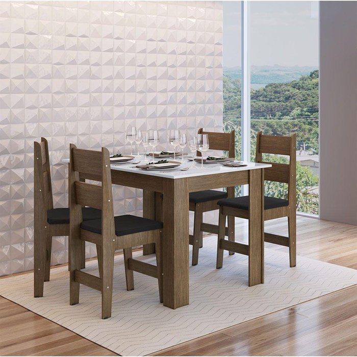 Conjunto Mesa Fixa com 04 Cadeira MDF Milano, CJE11200, Mov. Canção.
