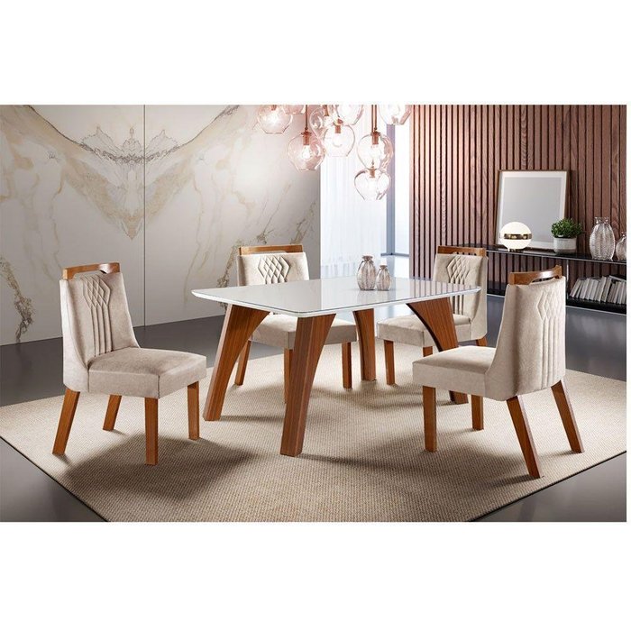 Conj. Sala De Jantar Mesa Tampo Mdf E 4 Cadeiras Off White Branco