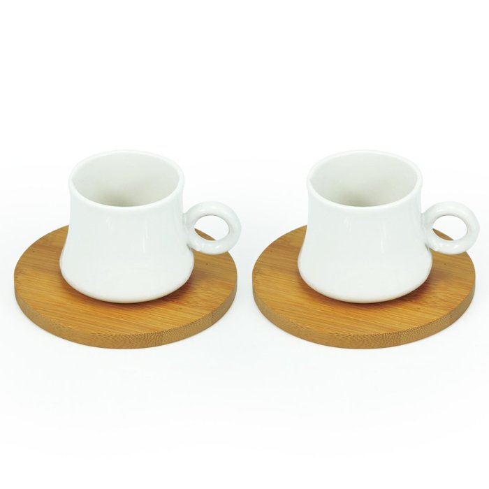 Conjunto de Xícaras Moderna de Cerâmica com Pires de Bambu - 2 peças