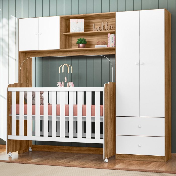 Conjugado Quarto Infantil 4 Portas, 2 Gavetas Ternura com Berço Amore Nature/branco - Peternella Móv