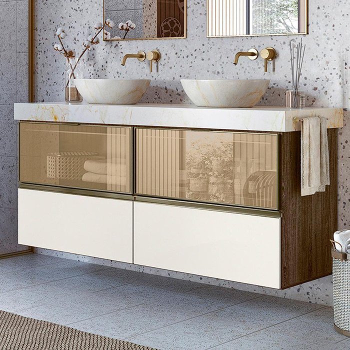 Conjunto 02 Balcoes Para Banheiro Cj14 Amendoa Off White