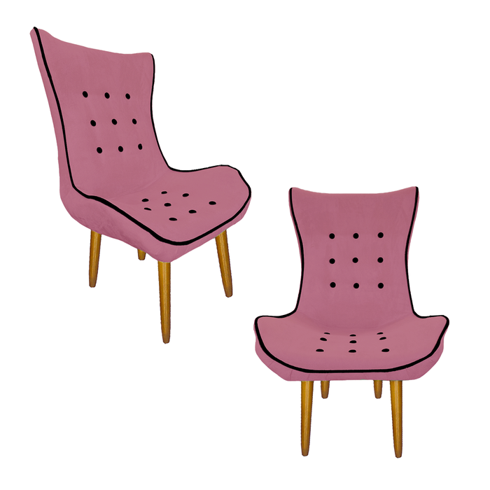 Conjunto 02 Poltrona Decorativa Jessica Quarto Closet Suede Rosa Barbie - LM DECOR