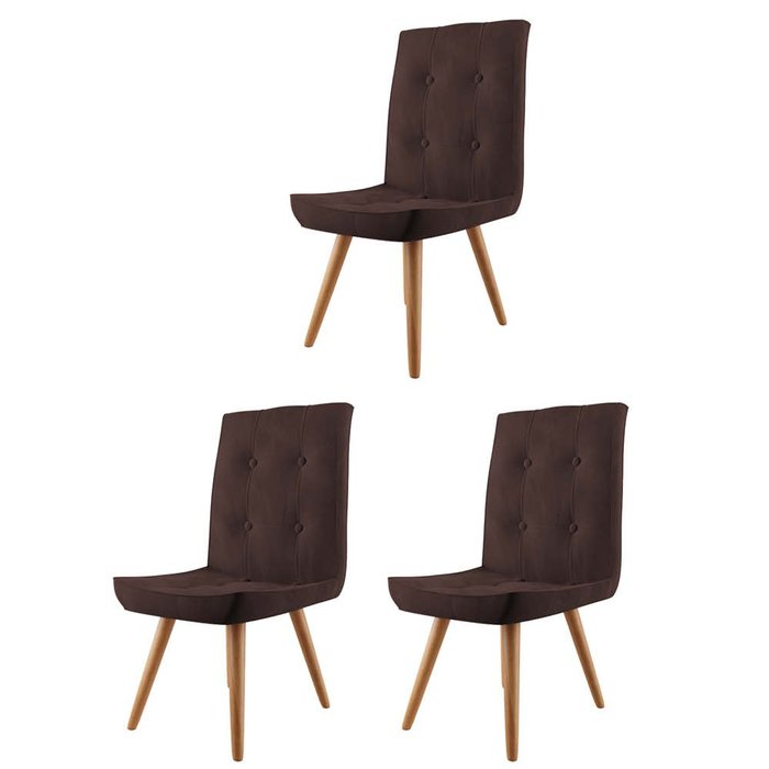 Conjunto 03 Cadeira de Jantar Drop Com Botão Base Pé Palito Freijó Corino Marrom - Amey Decor