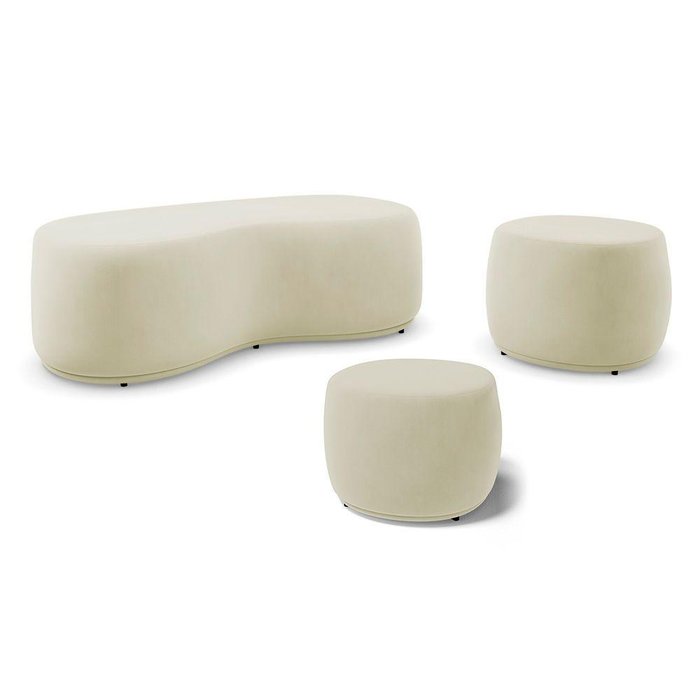 Conjunto 03 Puffs Decorativos Living Aisha Orgânico Suede Bege Claro - Desk Design