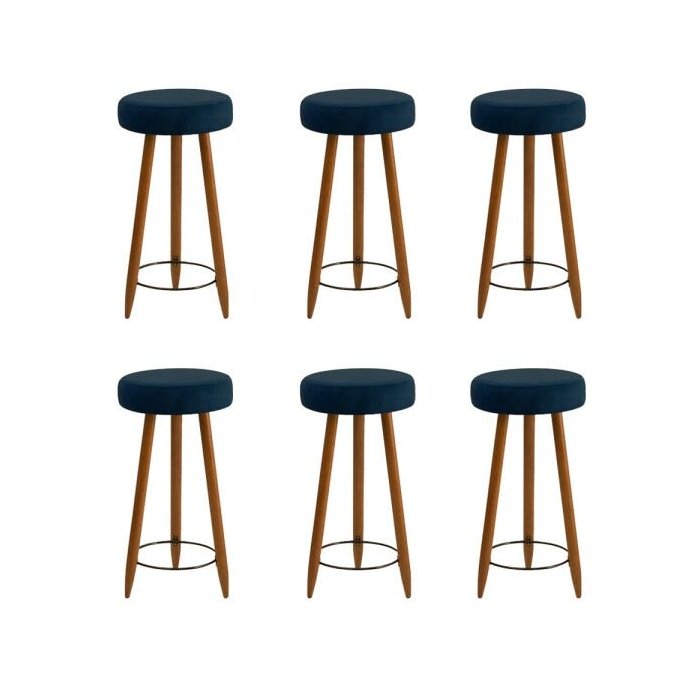 Conjunto 06 Banquetas Industrial Rubi Suede D'Rossi - Azul Marinho
