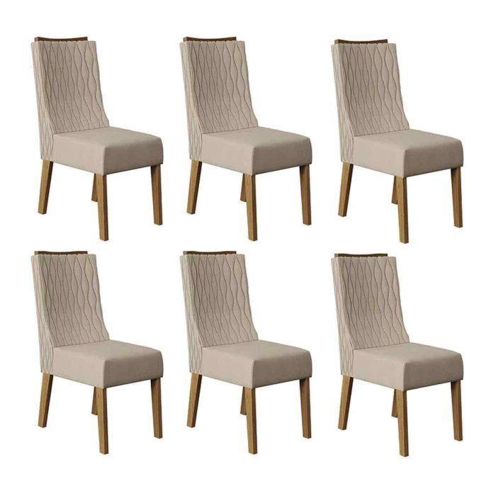 Conjunto 06 Cadeiras Estofadas Amélia - Suede Nude