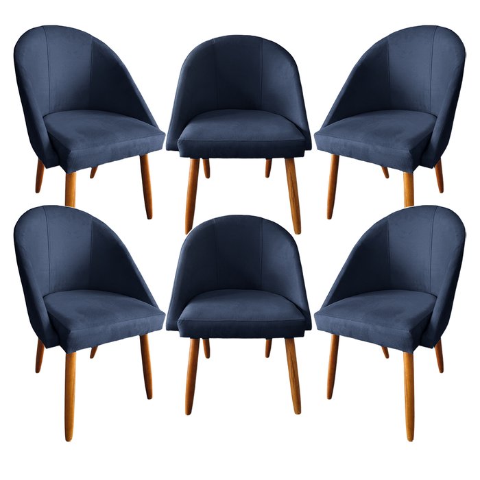 Conjunto 06 Cadeiras Meia Lua Estofadas para Sala Jantar Visammer - Azul-marinho Azul-marinho